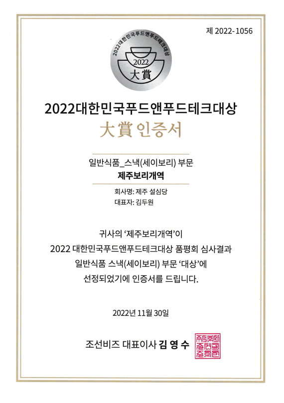 Á¦ÁÖ¼³½É´ç '±¸¼öÇѳ¢ º¸¸®°³¿ª' ´ë»ó¼ö»ó!!